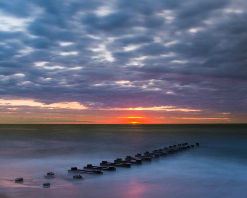 Sunrise at Rehoboth Beach, DE, at 5:35 am. Nikon D800, f/22 at 25 seconds, ISO 100, 24-70mm f/2.8 at 32mm, WB Daylight.